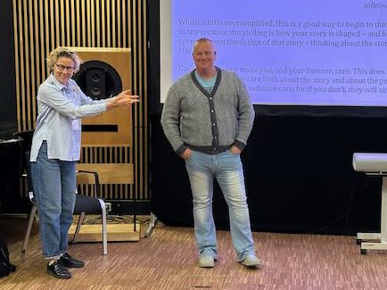 Nanna Hauge Kristensen takes a completely different approach as she presents one of her documentary pieces. Her work is almost entirely free of narrative scaffolding; instead it unfolds through exquisite sound recordings that conjure that oft-invoked “cinema of the mind” within seconds. She describes editing audio as a bodily experience. Everyone in the room understands immediately what she means, the rhythm of a piece as something one must feel, and the immersive experience of being taken to another place through audio documentary. Yet the delicacy of her pieces comes at a cost: such finely captured acoustic nuance demands deep attentiveness from the listener and can easily slip away if concentration falters. For an engaged listener tuning in on a quiet Sunday, these pieces are a delight. Yet for someone zapping through the radio late at night on their way home, they might not be able to reveal their depth.