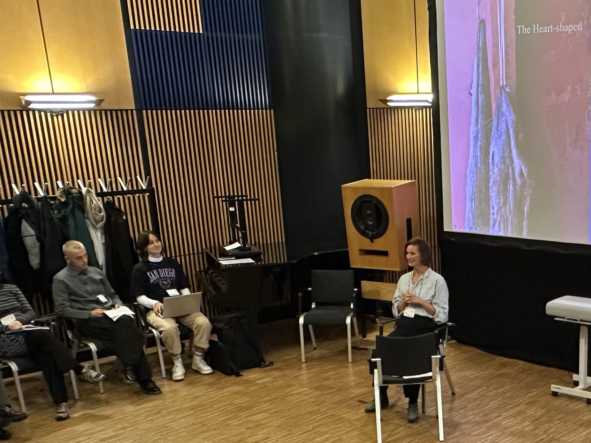 In between the guests lectures, we participants present our project proposals. The pitches are remarkable across the board: investigative research into social injustices, deeply personal explorations of family histories, and richly textured audio pieces that sweep the listener into immersive sound worlds. Together, we discuss the possibilities and pitfalls within each idea. I myself am wrestling with unwieldy amounts of archival material for a current project about the eventful life of a woman who fought against the Nazi regime (special thanks to Liva Blendstrup, who perfectly complemented my project idea with an advice that fits with striking precision). Everyone in the room – newcomers and seasoned producers alike – contributes generously, offering thoughtful and genuinely useful feedback.